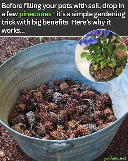 Many gardeners typically use gravel, stones, or pottery shards to improve drainage in pots. However, a more natural and sustainable choice is pinecones.