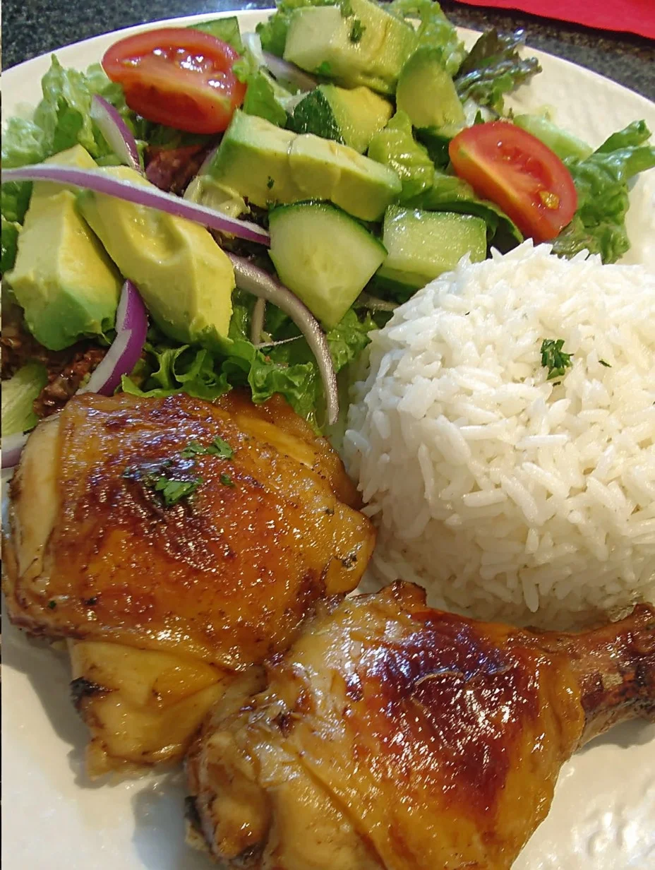 Honey Glazed Chicken with Avocado Salad and Rice is a vibrant, well-balanced meal that’s perfect for both weeknight dinners and weekend gatherings. Tender, juicy chicken thighs are coated in a sweet and savory glaze, served with a refreshing avocado salad and fluffy white rice to round out the plate.
