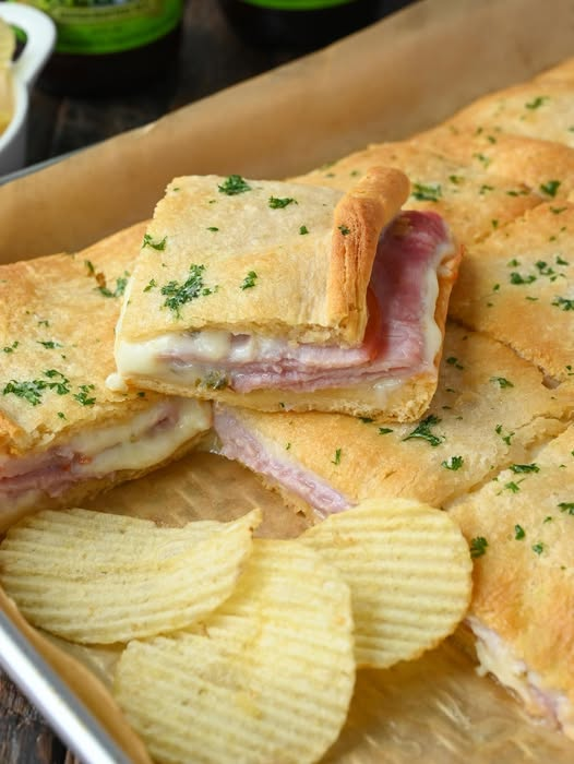 These Hot Ham and Cheese Crescent Roll Sandwiches are a delicious and effortless way to feed a hungry crowd. Buttery crescent dough is layered with savory ham and melty cheese, then baked until golden and flaky. Perfect for lunch, dinner, or a party appetizer, this easy bake-and-slice meal is a guaranteed hit.