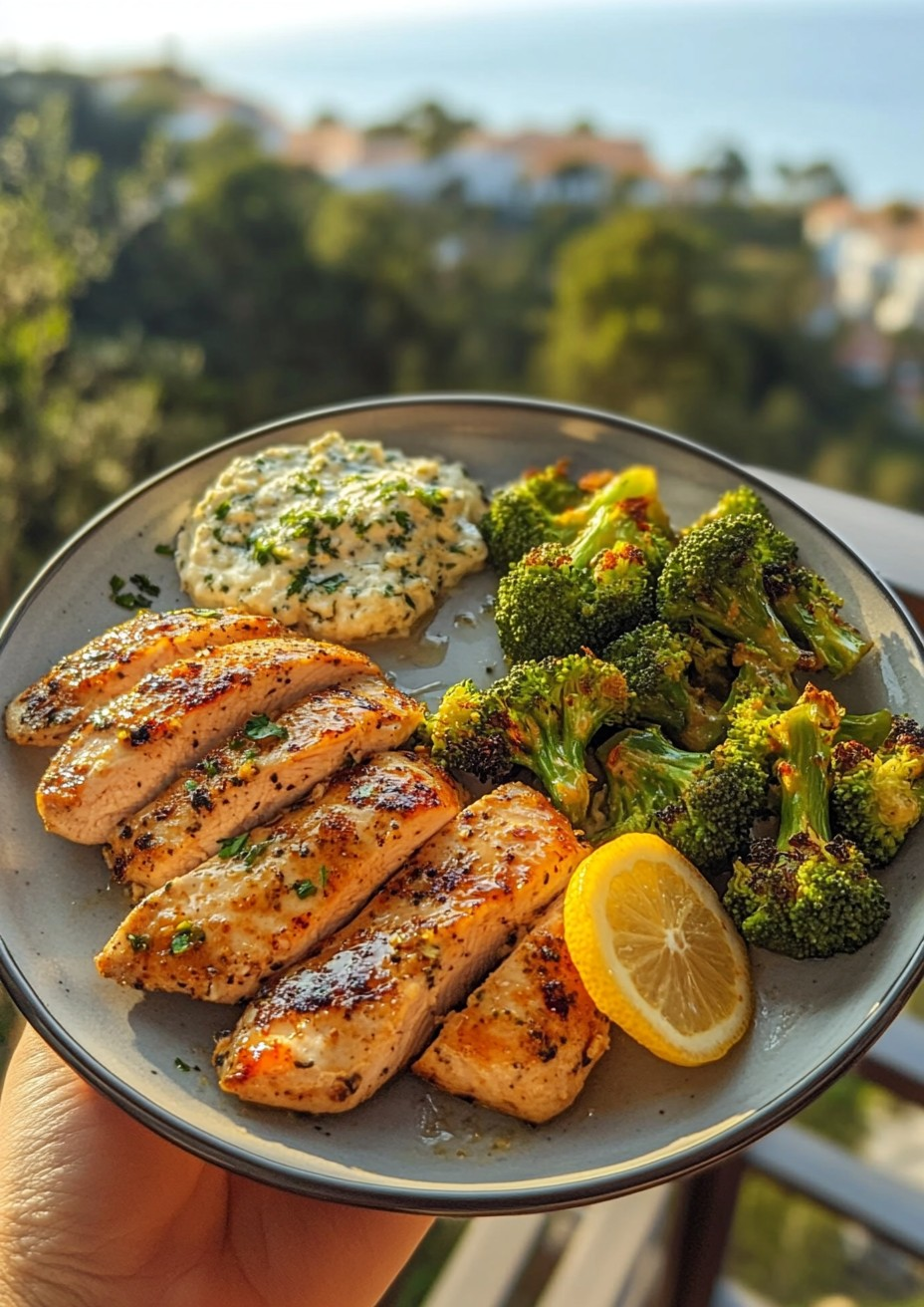 Hot Honey Lemon Chicken Alfredo with Jalapeño Feta Cream & Crispy Garlic Broccoli Wedges