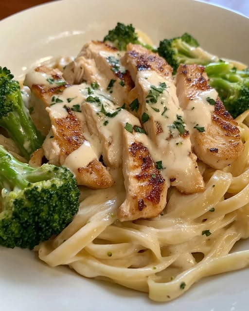 When comfort food and bold flavors collide, you get this Insanely Epic Garlic-Parmesan Chicken Alfredo & Broccoli Bowl. Creamy Alfredo sauce made from scratch, juicy grilled chicken, and crisp-tender broccoli come together over a bed of tender fettuccine for a dish that’s indulgent, satisfying, and utterly irresistible.