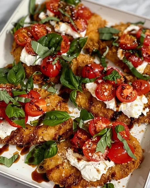 Crispy, golden chicken cutlets get a fresh, flavorful upgrade with creamy burrata cheese, juicy cherry tomatoes, and fragrant basil. This Italian-inspired dish is perfect for a summer dinner, a dinner party, or whenever you want something easy yet elegant!