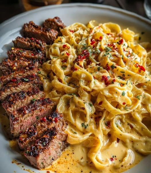 Bring restaurant-quality flavor to your table with this recipe for Juicy Cajun-Spiced Steak Slices served alongside creamy fettuccine pasta. The perfectly seared steak is seasoned with bold Cajun spices, then paired with a rich, cheesy sauce that coats every strand of pasta. It’s indulgent, satisfying, and sure to impress!