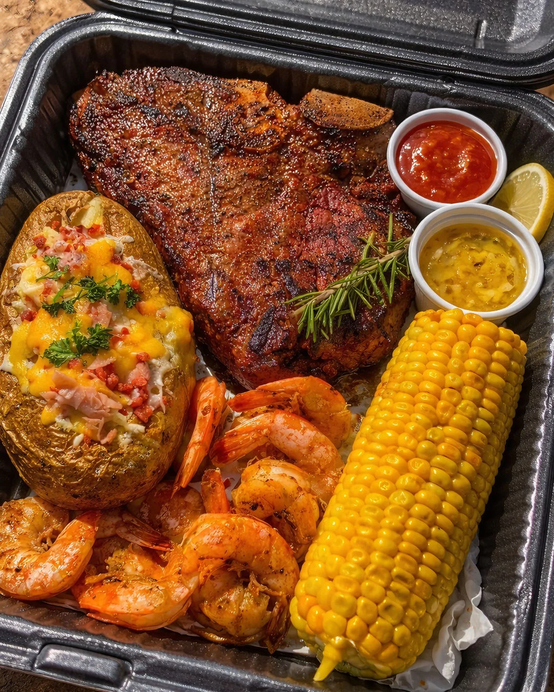 This Juicy Steak Feast with Shrimp and Buttery Corn is a showstopping meal that’s perfect for backyard dinners, weekend indulgence, or any time you want to treat yourself to a savory, satisfying plate. With a smoky, seared steak, garlic butter shrimp, fluffy loaded baked potato, and sweet corn on the cob, this dish is both hearty and balanced.