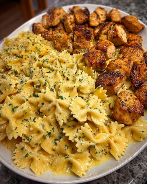 This lemon garlic chicken with creamy bowtie pasta is a bright and comforting dish that combines juicy, seasoned chicken with a rich, velvety pasta sauce. The hint of lemon adds freshness while the creamy texture makes it irresistibly satisfying—perfect for both weeknight meals and special dinners.