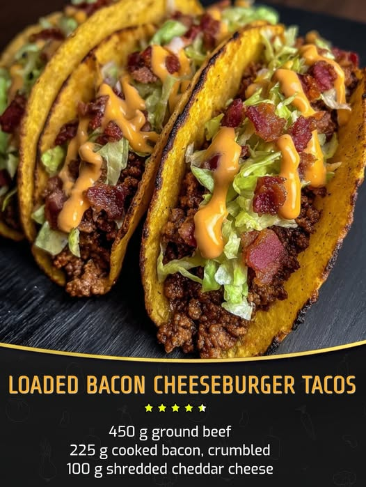 These Loaded Bacon Cheeseburger Tacos bring together the best of both worlds — all the juicy, cheesy, smoky flavors of a bacon cheeseburger packed into a crunchy taco shell. Perfect for game days, parties, or a fun family dinner!