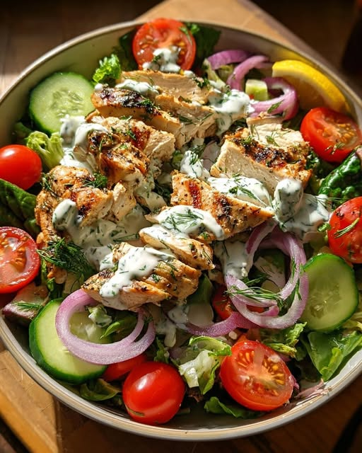 Savor the fresh, vibrant flavors of the Mediterranean with this Loaded Grilled Chicken Greek Salad Bowl. It’s packed with crisp veggies, juicy grilled chicken, and topped with a luscious homemade tzatziki sauce that brings every bite to life. Perfect for a healthy lunch or dinner that’s both satisfying and refreshing.