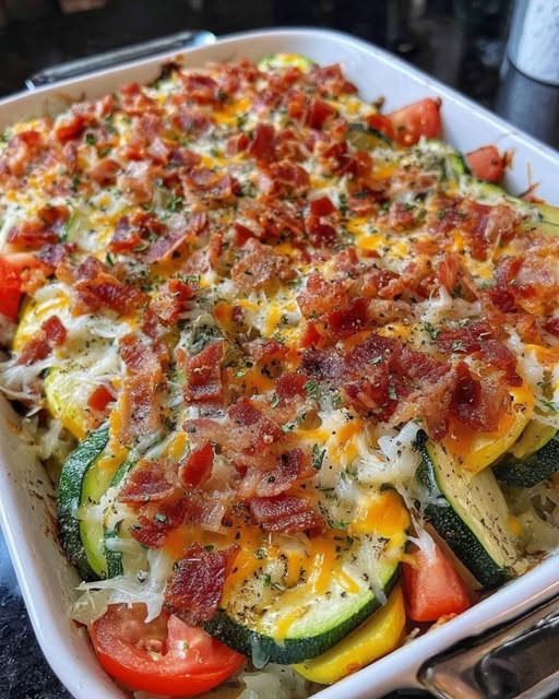 This Loaded Zucchini and Squash Bake is the perfect way to turn fresh summer veggies into a hearty, cheesy, and bacon-topped casserole. It’s an easy side dish or even a light main that’s sure to win over the whole family!