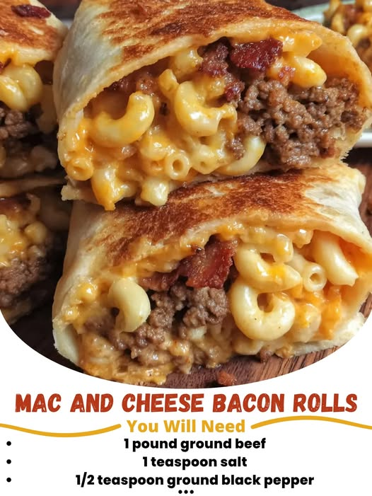 Get ready for the ultimate indulgence! These Mac and Cheese Bacon Rolls combine creamy mac and cheese, savory ground beef, crispy bacon, and melty cheddar all wrapped in a golden, toasty tortilla. Perfect for parties, game day, or a fun family dinner, these rolls are sure to be a hit!