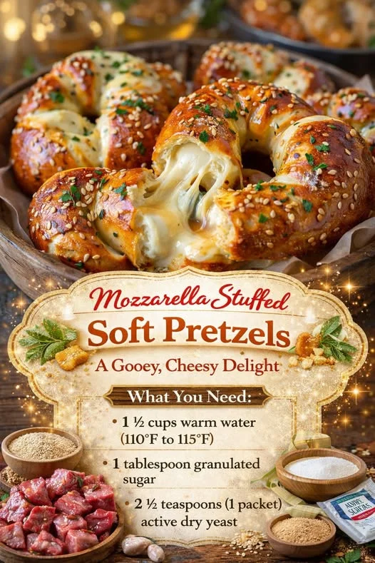 These mozzarella stuffed soft pretzels are the ultimate comfort snack—golden brown on the outside, soft and fluffy on the inside, and filled with melty, stretchy cheese. Perfect for game days, parties, or a cozy homemade treat.