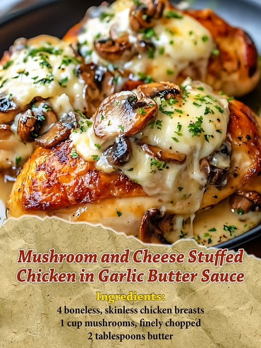 This Mushroom and Cheese Stuffed Chicken in Garlic Butter Sauce is an elegant yet easy dinner that’s bursting with savory flavor. Juicy chicken breasts are packed with melty cheese and sautéed mushrooms, then bathed in a rich garlic butter sauce for a restaurant-quality meal at home.