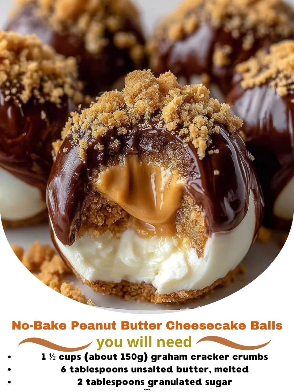 These No-Bake Peanut Butter Cheesecake Balls are rich, creamy, and packed with indulgent flavor. With a graham cracker crust base, a velvety cheesecake center, a gooey peanut butter core, and a chocolate shell, they make a perfect bite-sized dessert for any occasion—no oven required!