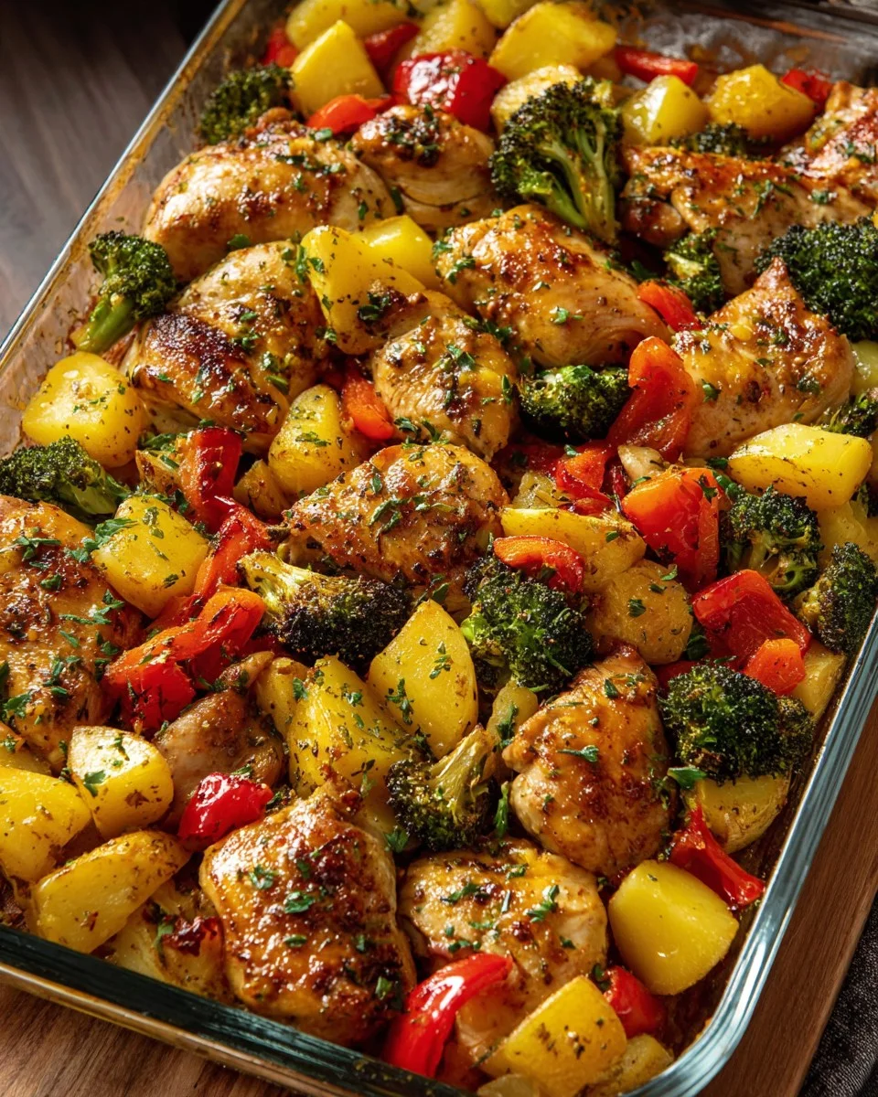 This One-Pan Roasted Chicken Thighs with Veggies & Potatoes dish is a fuss-free, flavor-packed dinner that comes together in a single baking dish. With juicy, seasoned chicken thighs, tender potatoes, and perfectly roasted vegetables, it’s a wholesome and hearty family favorite.
