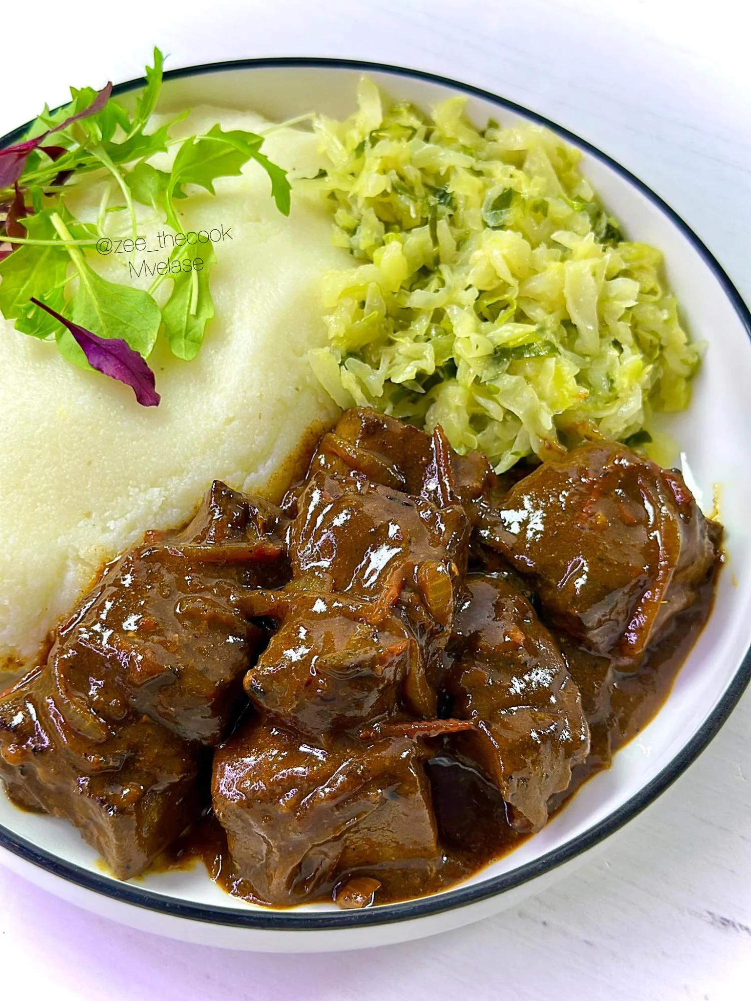 Ox liver is a rich, flavorful, and nutrient-packed dish that can be enjoyed with pap (maize meal) and sautéed cabbage, as shown in the image. This hearty, comforting meal is a staple in many African homes and is easy to prepare once the liver is properly cleaned and seasoned.
