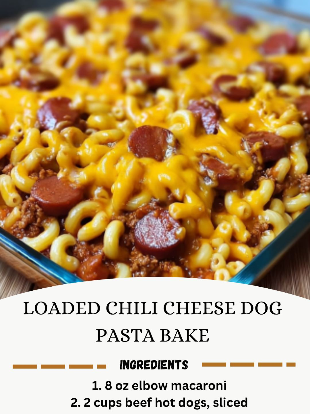 Loaded Chili Cheese Dog Pasta Bake