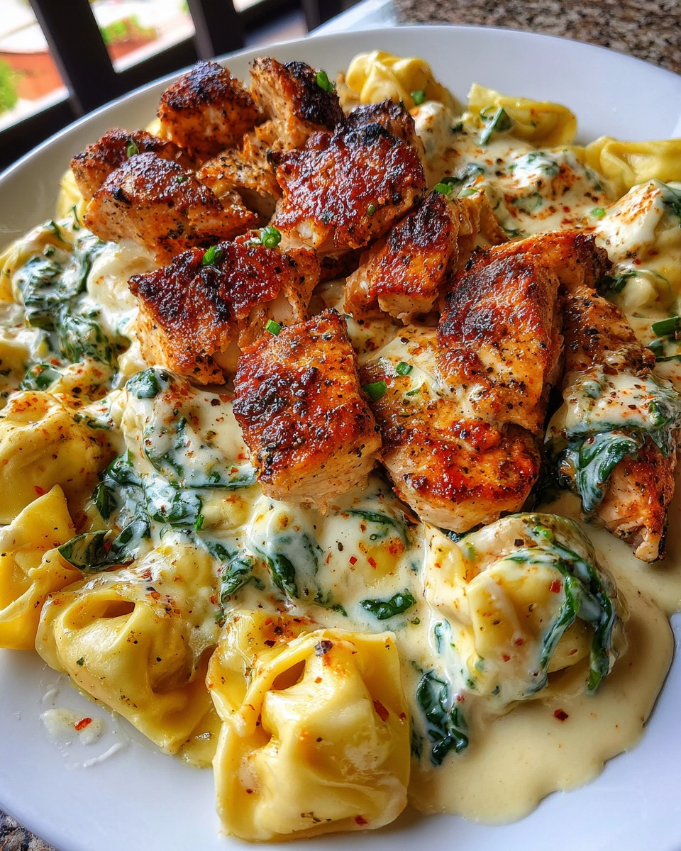 This Cheesy Garlic Parmesan Chicken Tortellini with Spinach is a decadent yet quick dinner that’s rich, satisfying, and packed with flavor. Golden seared chicken sits atop tender cheese-stuffed tortellini coated in a velvety garlic-Parmesan cream sauce, loaded with spinach. A perfect combination for cozy nights or special gatherings. Ingredients For the Chicken:1 lb boneless, skinless … Read more