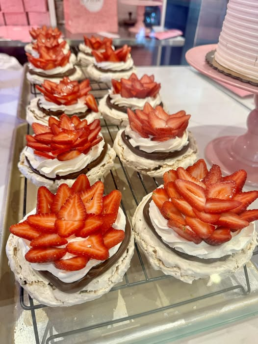 These mini Pavlova Cakes are crisp on the outside, marshmallow-soft in the center, and topped with luscious chocolate ganache, whipped cream, and fresh strawberries. A beautiful dessert for parties, showers, or any occasion that calls for something light yet indulgent.