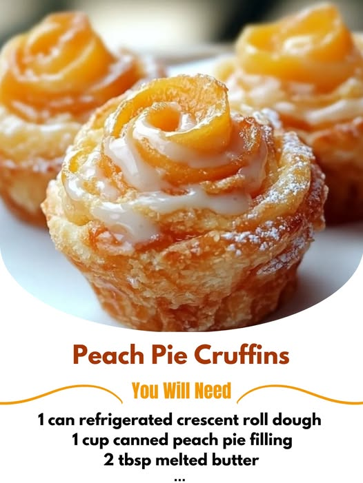 Peach Pie Cruffins are a delightful mash-up of a croissant and muffin, filled with sweet peach pie filling and baked until golden and flaky. These pretty, spiraled treats are perfect for brunch, dessert, or anytime you need a fruity, buttery bite with just the right amount of sweetness.