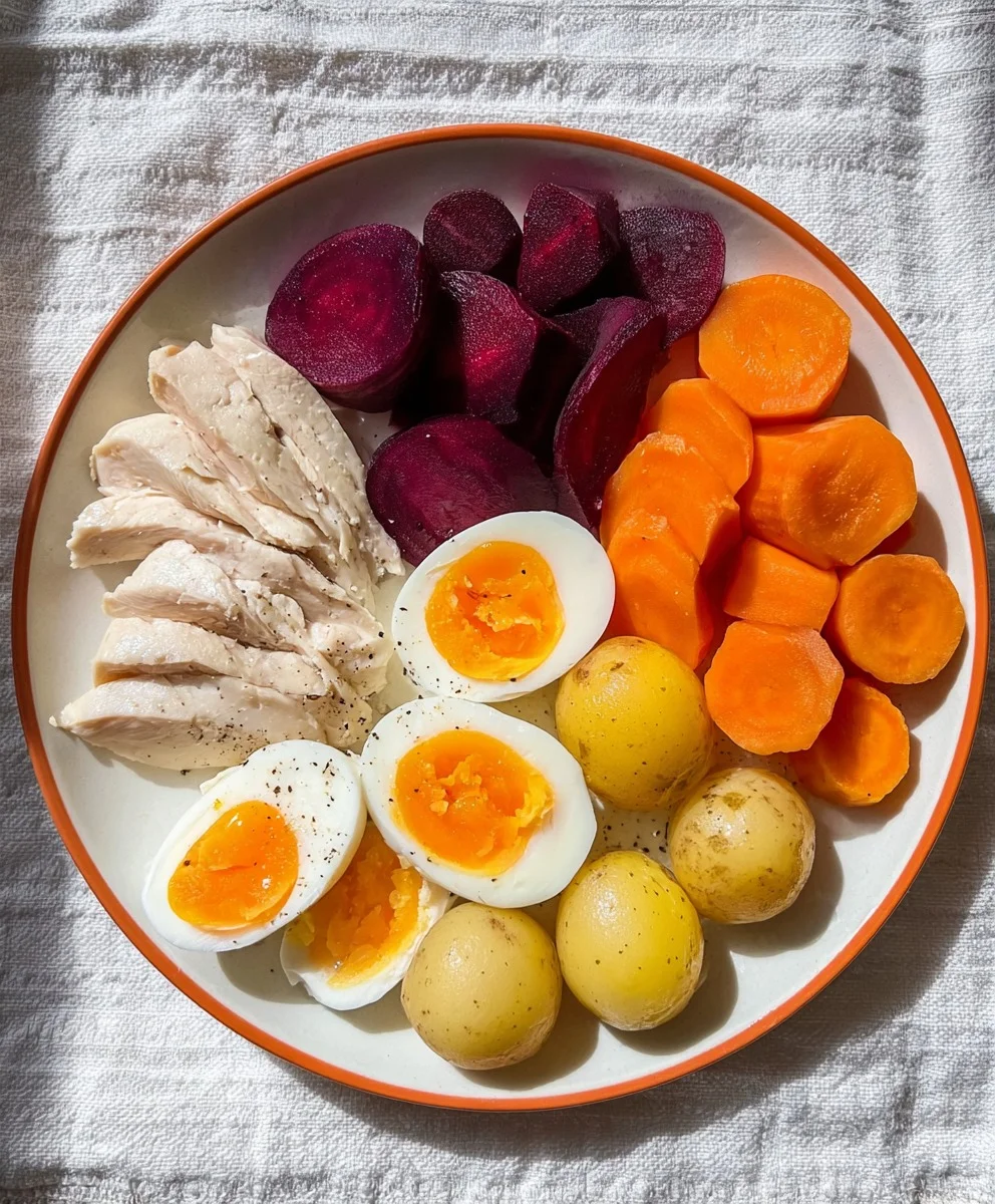 This Protein Power Plate is a clean and balanced meal made with lean chicken, jammy eggs, and vibrant vegetables like carrots, beets, and baby potatoes. It’s perfect for meal prep, post-workout recovery, or anyone looking for a nutritious and colorful dish.