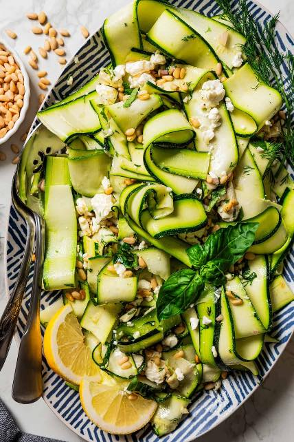 This Raw Zucchini Salad is everything we love about summer in a bowl—light, crisp, herby, and tangy with a creamy touch of feta and the nutty crunch of pine nuts. It’s a refreshing side that pairs beautifully with grilled meats or stands alone as a vibrant lunch.