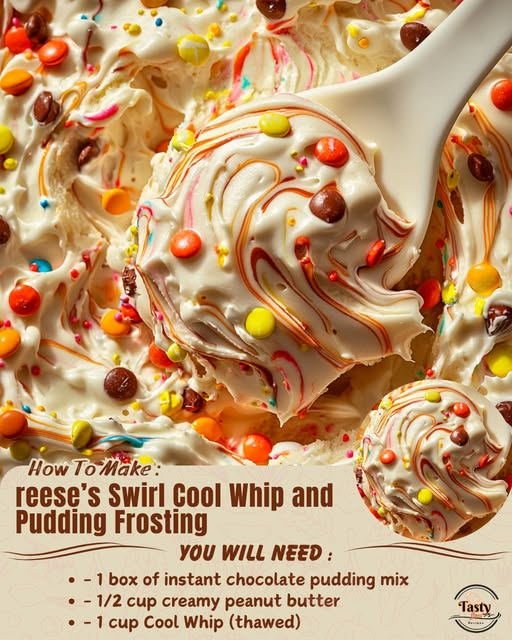 Get ready to take your desserts to the next level with this Reese’s Swirl Cool Whip and Pudding Frosting! Light, fluffy, and irresistibly rich, this frosting swirls together chocolate pudding, peanut butter, and whipped topping for a treat that tastes just like your favorite candy. Perfect for cupcakes, cakes, or as a dip for cookies and fruit.