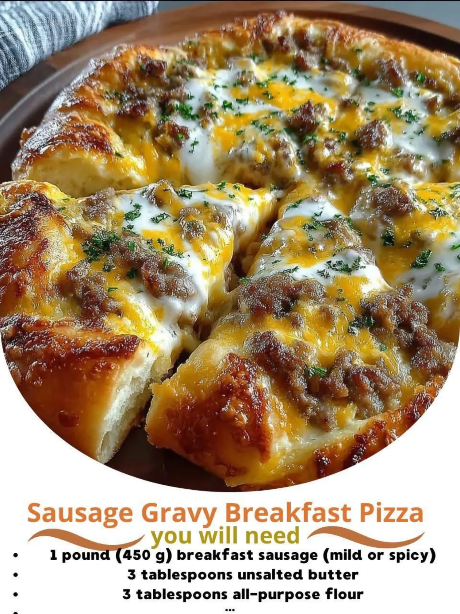 Satisfy your morning cravings with this hearty and comforting Sausage Gravy Breakfast Pizza. With a golden crust, creamy homemade sausage gravy, fluffy scrambled eggs, and melted cheese, it’s the perfect way to kick-start your day or serve up brunch in style.