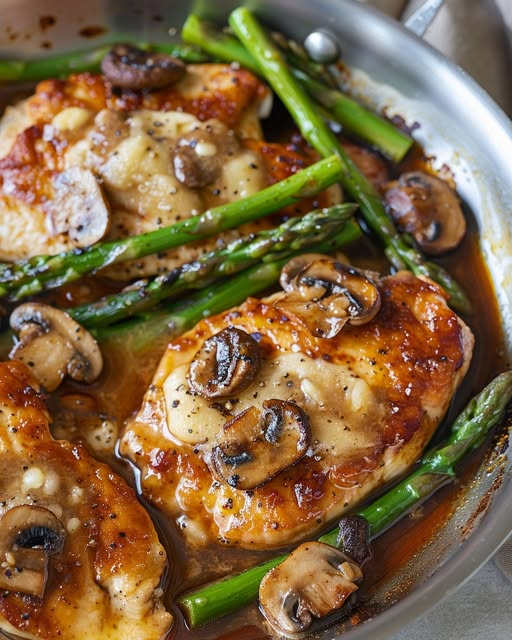 Treat yourself to a restaurant-quality dinner with this savory Chicken Madeira. Juicy chicken breasts are pan-seared and simmered in a rich mushroom and Madeira wine sauce, then paired with tender asparagus for a dish that’s both elegant and comforting.