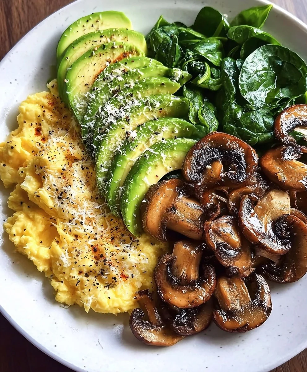 Savory Scramble Bowl with Garlic Mushrooms & Spinach