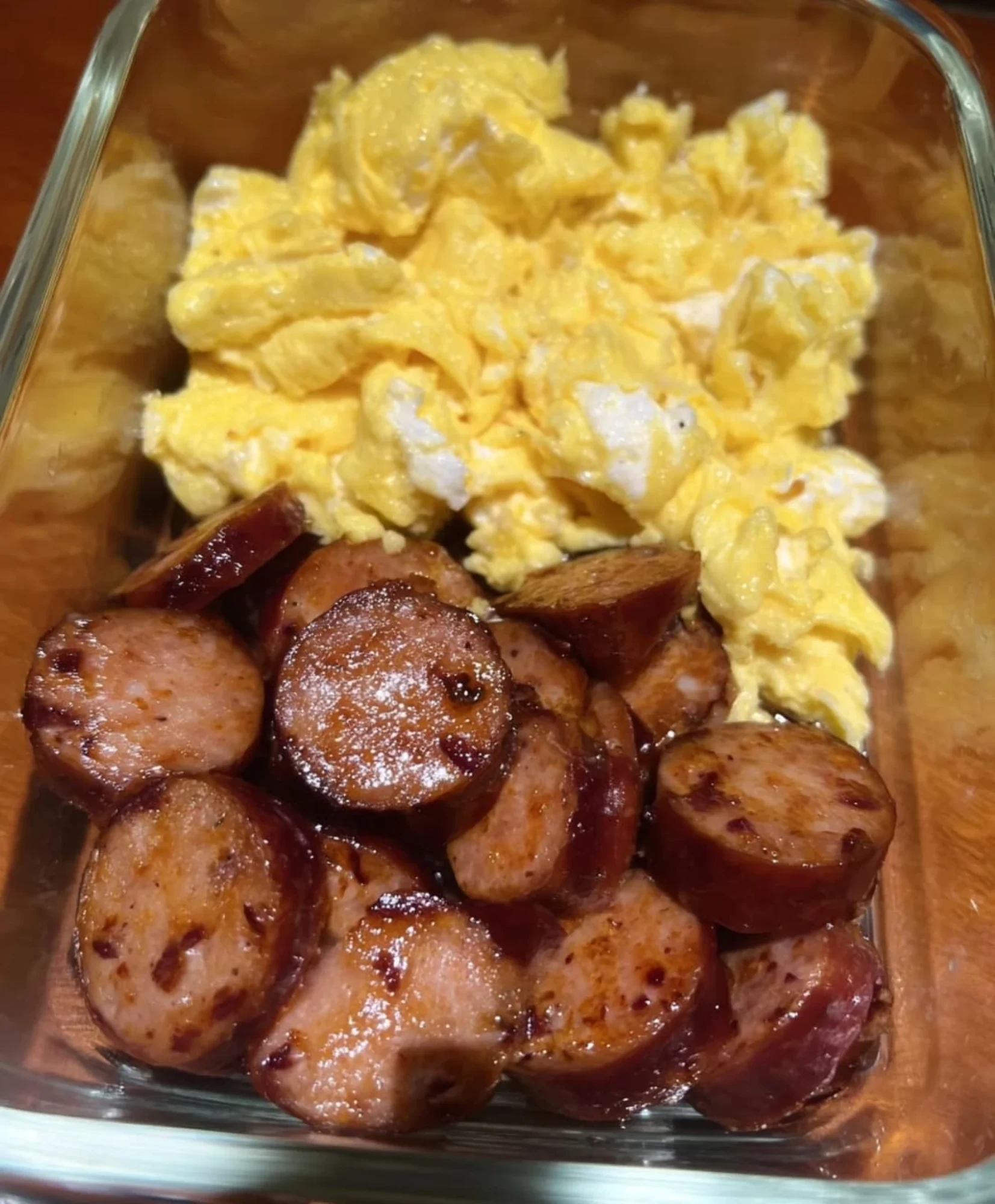 This Scrambled Eggs & Pan-Seared Sausage Plate is a quick, satisfying breakfast or protein-packed meal prep option. The fluffy, creamy eggs pair perfectly with smoky, caramelized sausage slices, making it a comforting and hearty dish to fuel your day.