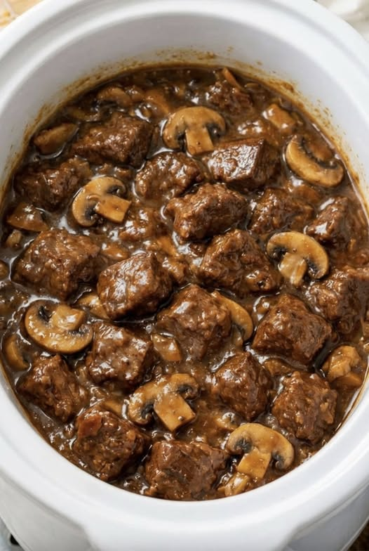 This comforting slow cooker dish features tender beef tips simmered in a rich, savory gravy with earthy mushrooms. It’s a hearty, flavorful meal that’s perfect served over mashed potatoes, rice, or noodles.