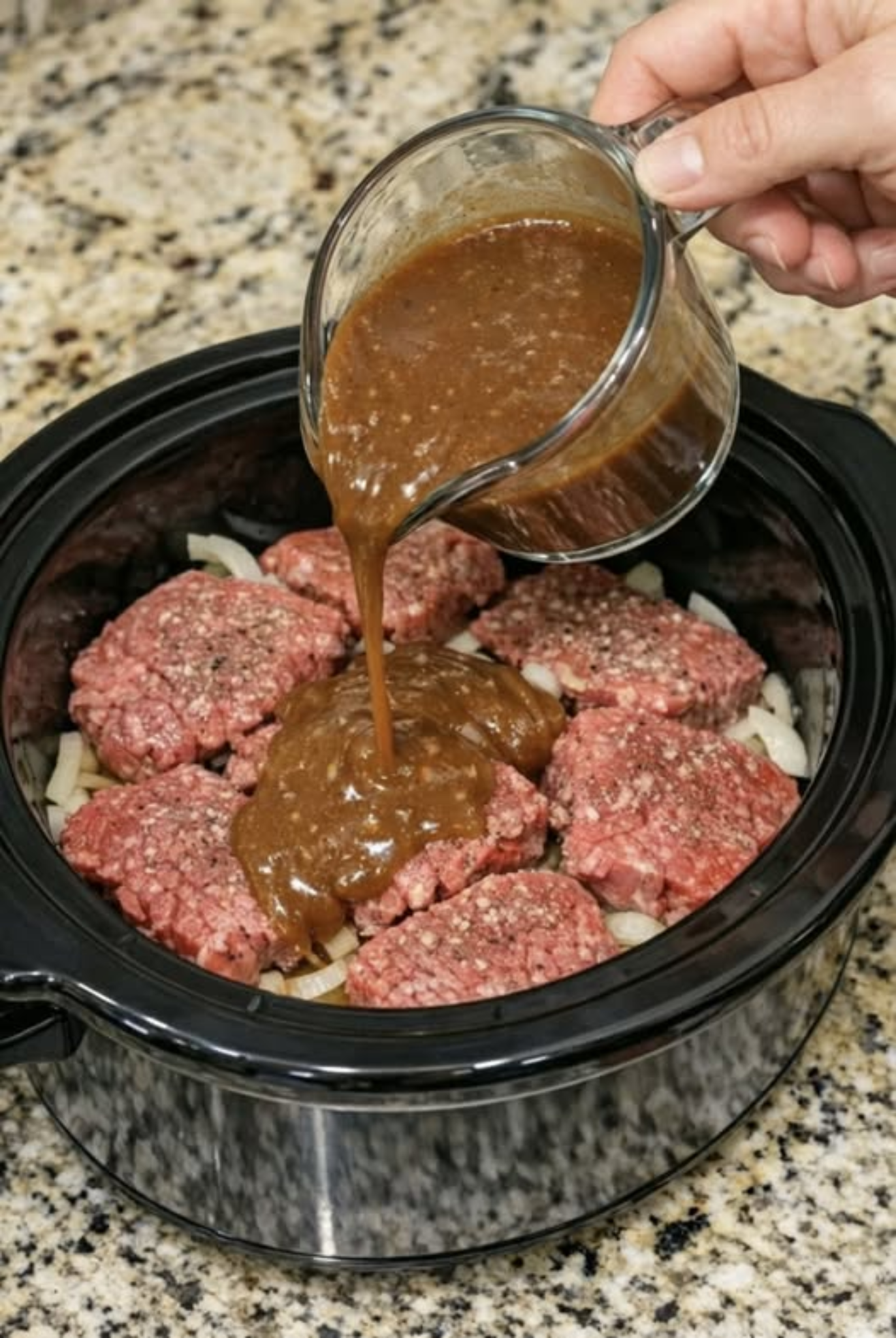 This comforting slow cooker Salisbury steak features juicy seasoned beef patties simmered in a rich, savory onion gravy. It’s an easy, hearty meal perfect for busy days and pairs wonderfully with mashed potatoes or rice.