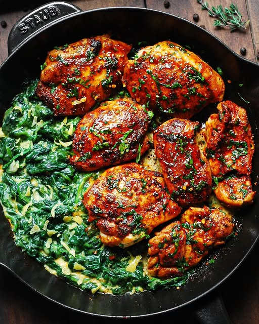 These Smoked Paprika Chicken Thighs with Creamed Lemon Spinach are tender, flavorful, and cooked all in one skillet for a hassle-free, weeknight-worthy dinner. The smoky, spiced chicken pairs perfectly with the bright and creamy spinach, delivering a low-carb meal that’s as delicious as it is satisfying.