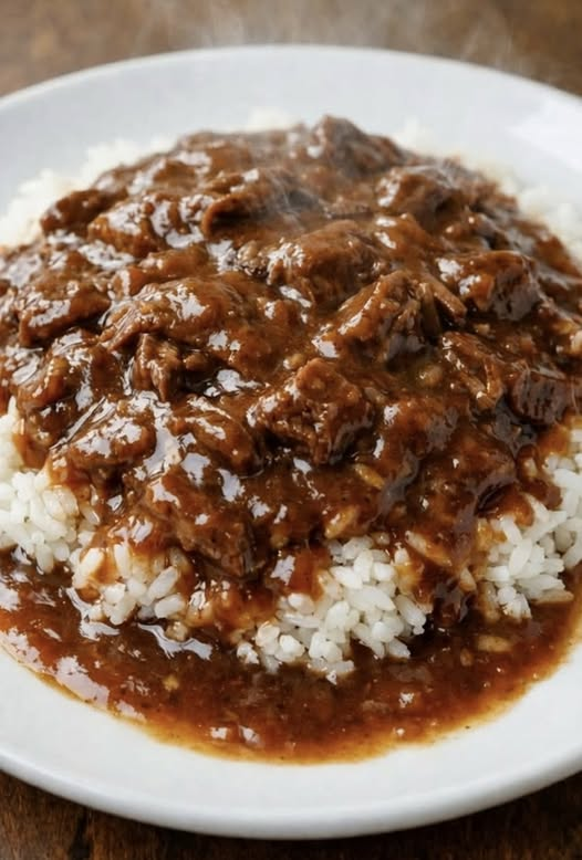 A rich and comforting classic featuring tender, slow-cooked beef smothered in a thick, savory brown gravy and served over fluffy white rice. This hearty dish is perfect for cozy dinners and satisfying cravings.