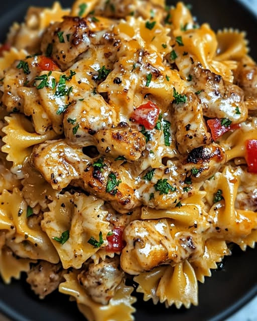 This Southern Garlic Butter Chicken Bowties with Parmesan Sauce is a comforting, indulgent pasta dish packed with flavor! Tender chicken bites are seared in garlic butter, tossed with bowtie pasta, and coated in a creamy Parmesan sauce — pure comfort in every bite.