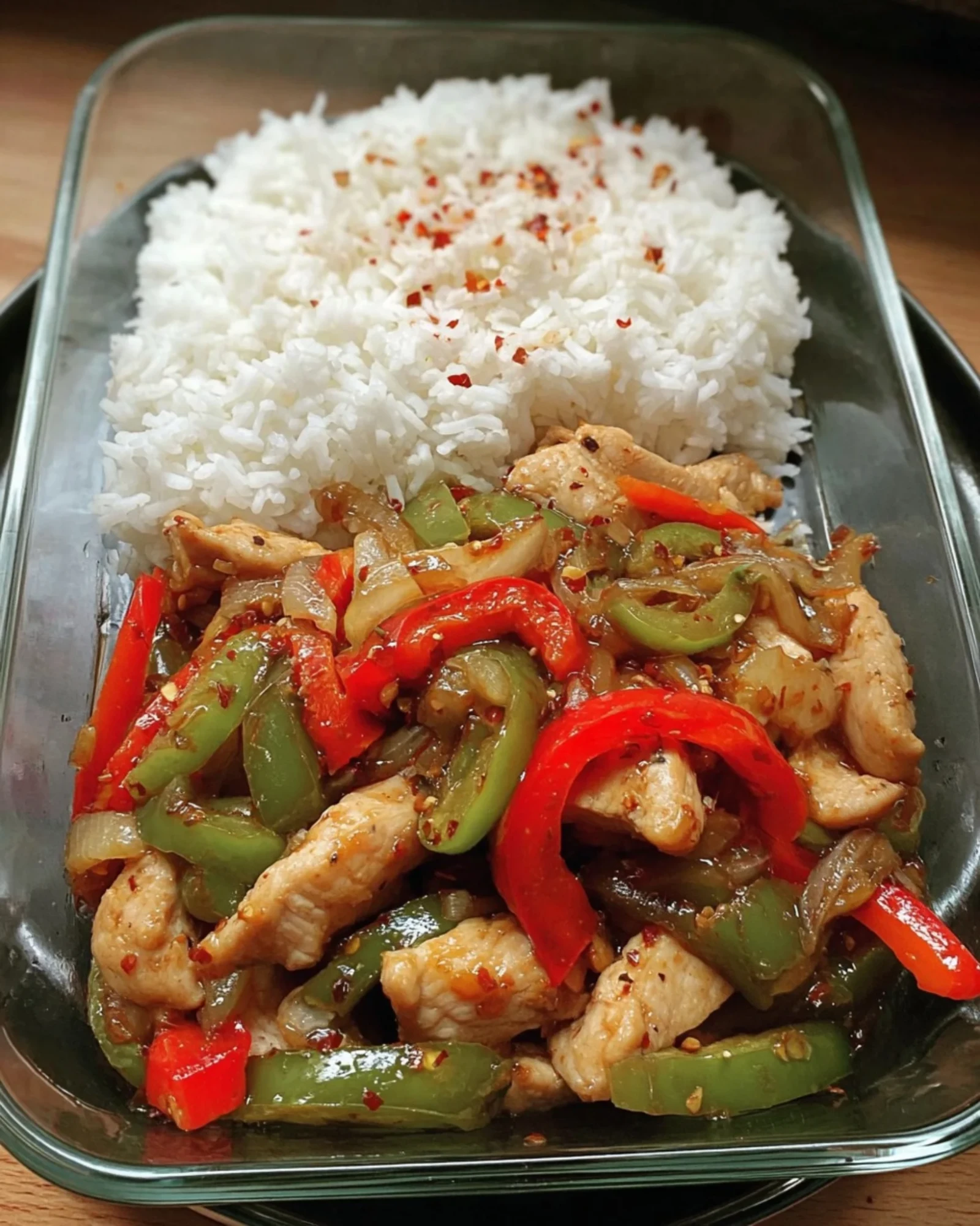 This Spicy Garlic Chicken Stir-Fry with Bell Peppers & Rice is a bold and flavorful dish that’s quick to prepare and perfect for spice lovers. Tender strips of chicken are stir-fried with colorful bell peppers and onions in a spicy garlic sauce, then served over a bed of fluffy white rice for a satisfying and healthy meal.