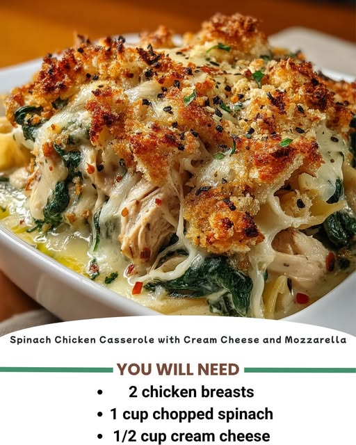 Spinach Chicken Casserole with Cream Cheese & Mozzarella