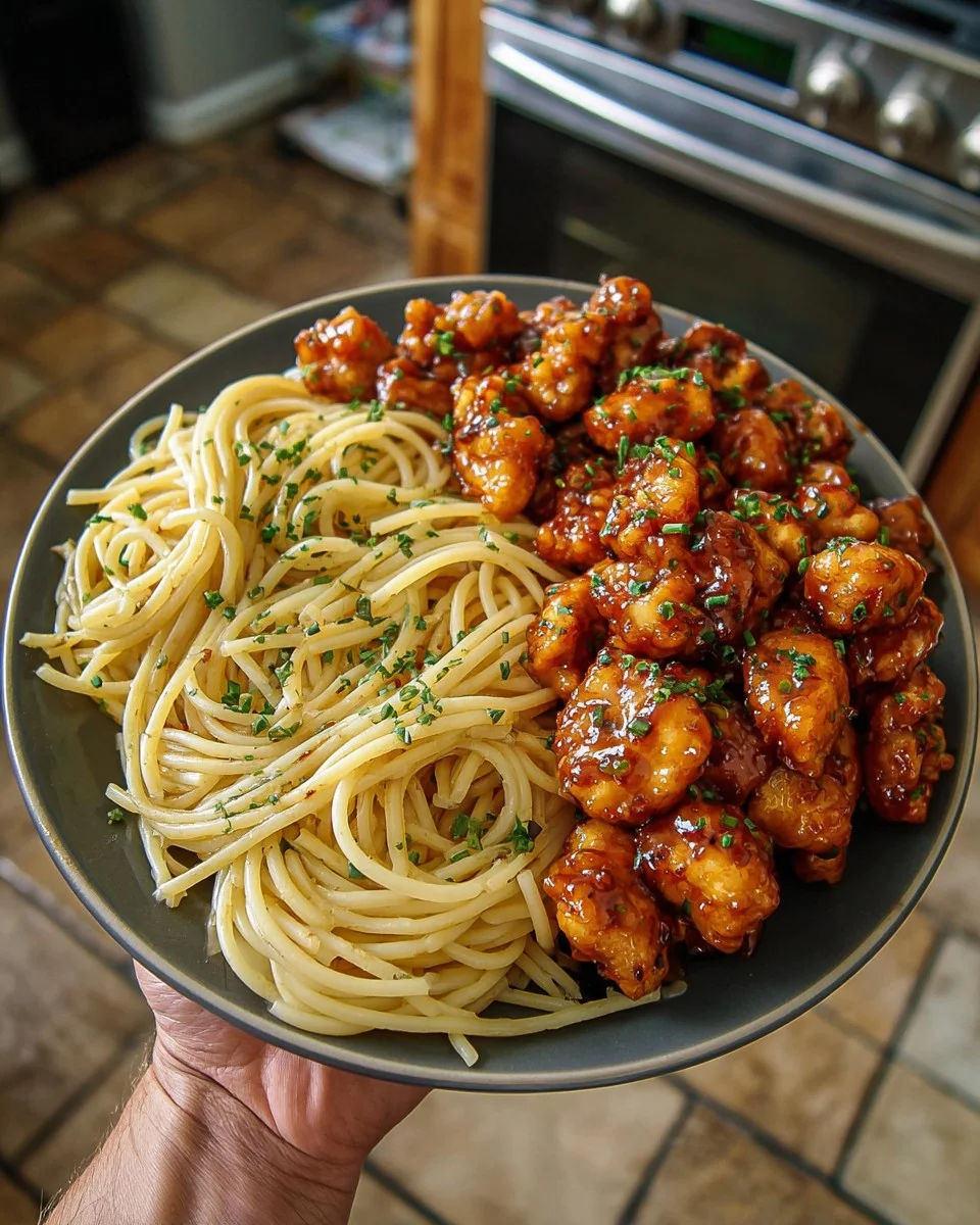 This sticky honey garlic chicken paired with garlic butter noodles is the ultimate sweet-savory comfort combo. The crispy chicken bites coated in a glossy honey garlic sauce are addictive, and when served with simple, buttery noodles, they create a perfect weeknight dinner.