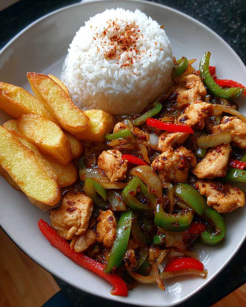 This Stir-Fried Chicken with Peppers, Rice & Crispy Potato Wedges is a vibrant and hearty meal that balances bold flavors, colorful veggies, and satisfying sides. Tender chicken breast stir-fried with sweet bell peppers and onions in a savory sauce is served alongside fluffy white rice and golden, crispy potato wedges. It’s a delicious fusion plate perfect for any time of the week.