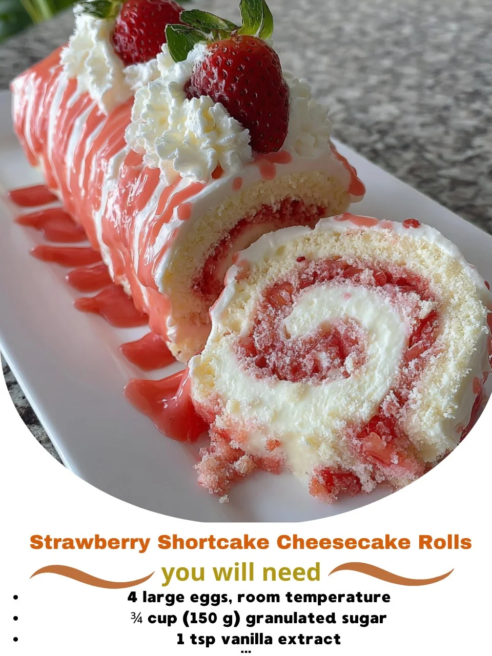Strawberry Shortcake Cheesecake Rolls are a stunning and scrumptious dessert that combines fluffy sponge cake, creamy cheesecake filling, and a fresh strawberry layer, all rolled into an elegant log. Topped with whipped cream and juicy berries, this roll cake is perfect for spring, summer, or any celebration that calls for a showstopper.