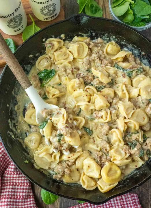This Tortellini and Sausage Skillet is the ultimate one-pan comfort meal! Packed with cheesy tortellini, savory sausage, fresh spinach, and a creamy sauce, it’s quick to make and perfect for busy weeknights when you need something hearty and satisfying.