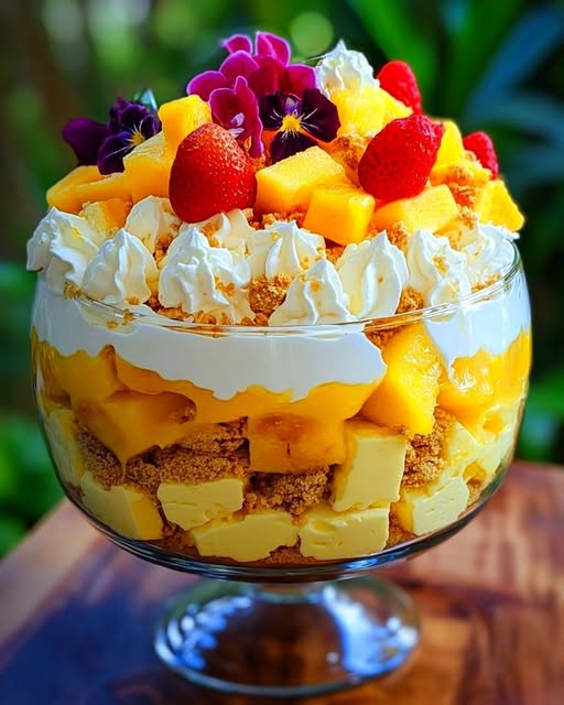 Bring the flavors of a tropical paradise to your dessert table with this luscious Tropical Mango Strawberry Cheesecake Trifle. This layered dessert combines velvety cheesecake, juicy mangoes, sweet strawberries, and fluffy whipped cream into a show-stopping treat perfect for summer gatherings, birthdays, or any special occasion.
