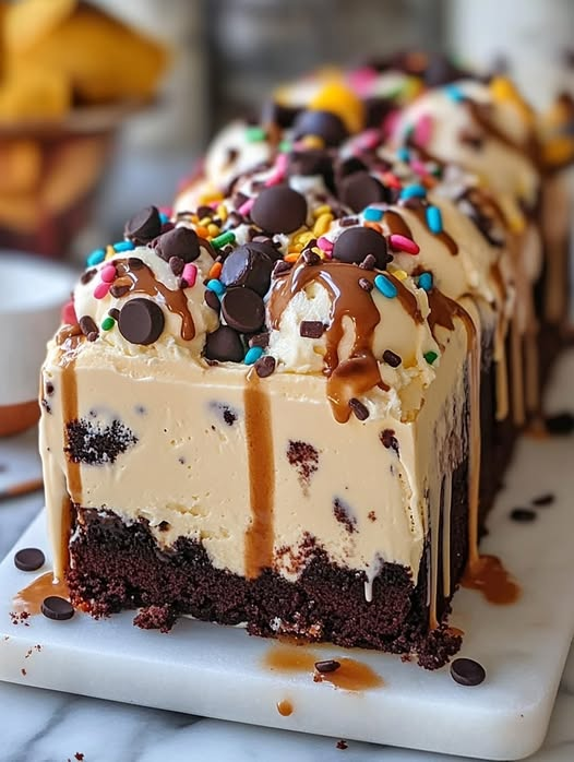 Looking for a show-stopping dessert that’s cool, creamy, and easy to assemble? This Ice Cream Loaf Cake layers rich chocolate cake with your favorite ice cream and fun toppings like sprinkles, chocolate chips, and caramel sauce. It’s the perfect frozen treat for birthdays, BBQs, or anytime indulgence!