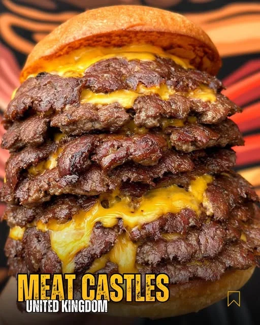 If you’re looking for the ultimate indulgent burger, the Meat Castle Burger is the final boss. Towering layers of crispy-edged smashed beef patties, molten cheddar cheese, and a buttery toasted bun create a burger that is unapologetically messy and unbelievably satisfying. Every bite delivers juicy beef, rich melted cheese, and crispy caramelized edges that burger lovers dream about.