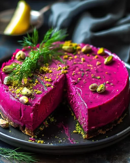 This vibrant and creamy savory cheesecake is a showstopper that blends the earthy sweetness of beetroot with the tangy saltiness of feta cheese. Enhanced with fresh dill and a pistachio-studded crust, it makes for a stunning appetizer or unique addition to your brunch or dinner table.