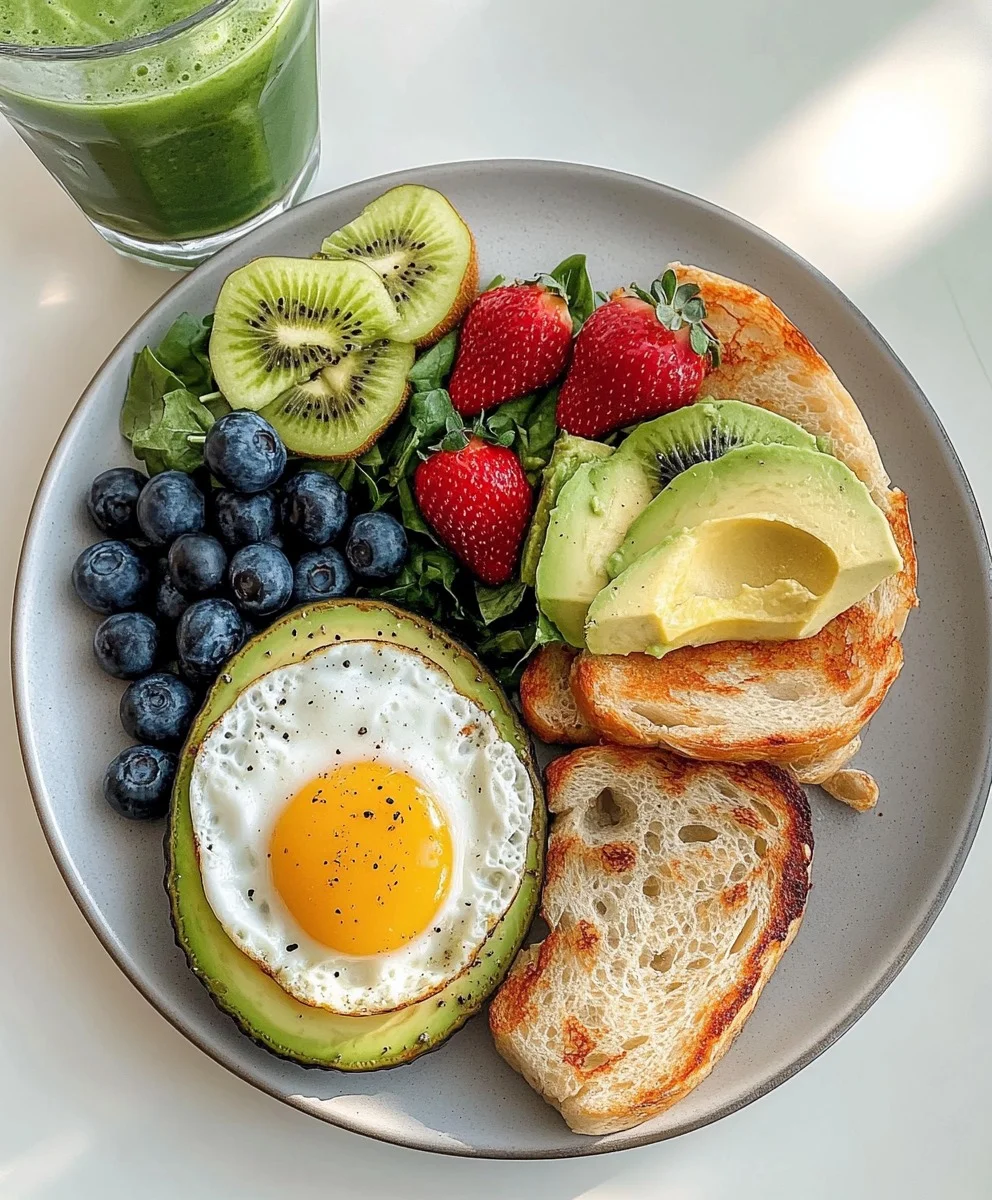 Start your day energized and satisfied with this Vibrant Power Brunch Plate. Packed with healthy fats, protein, fiber, and natural sweetness, this colorful combination of fruit, avocado, egg, and toasted bread offers a balanced and nourishing way to fuel your morning.