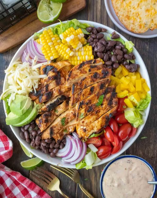 This Southwestern Chicken Salad bursts with bold flavors and fresh ingredients! Juicy grilled chicken, crisp veggies, black beans, corn, and creamy avocado come together over a bed of lettuce, all drizzled with a smoky chipotle ranch dressing. It’s a hearty and colorful meal perfect for lunch or dinner!